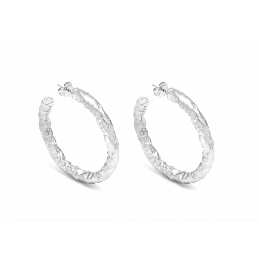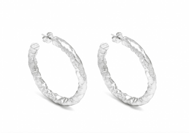 Gli orecchini Stone Grandi sono luminosi grazie ad una lastra d'argento martellata a mano e successivamente piegata. Riflettono la luce naturale in ogni direzione e illuminano il volto di chi li indossa. Creati a mano in Italia, si presenta con chiusura a farfallina.