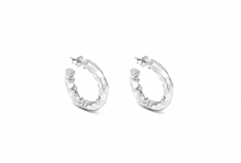 Gli orecchini Stone Piccoli sono eleganti e sono realizzati a partire da una lastra d'argento martellata a mano e successivamente piegata. Riflettono la luce naturale in ogni direzione e illuminano il volto di chi li indossa. Creati a mano in Italia, si presenta con chiusura a farfallina.