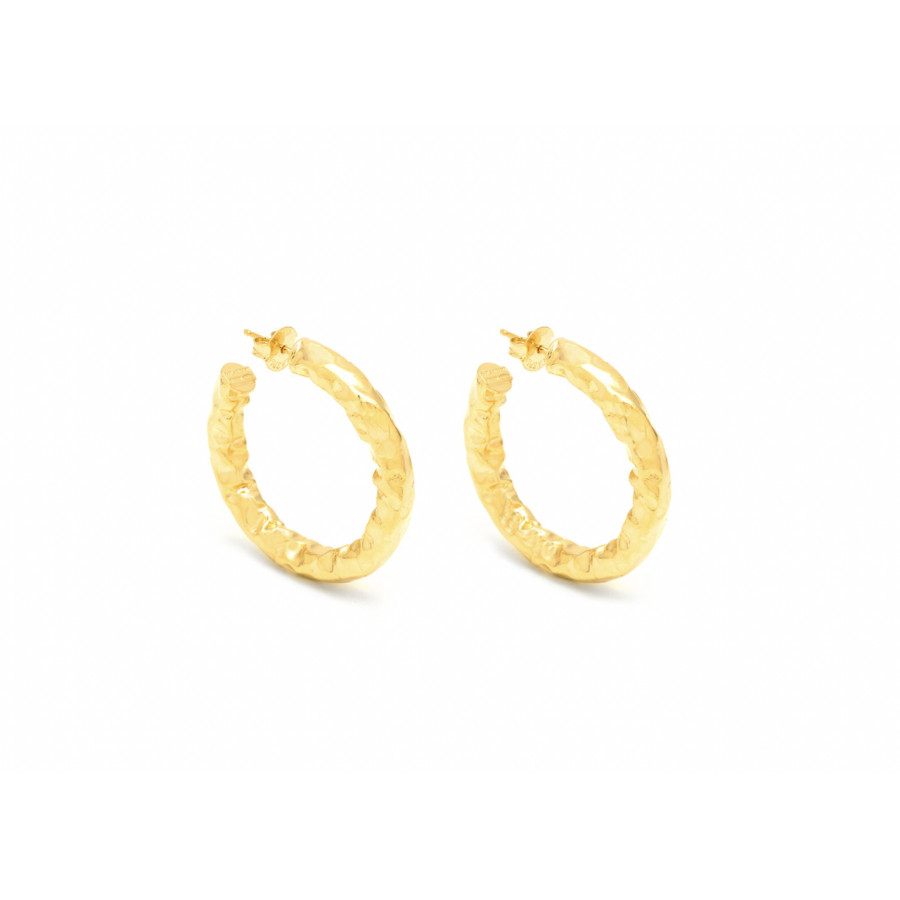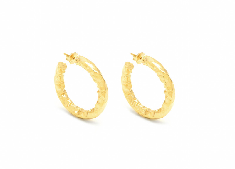 Gli orecchini stone medi sono luminosi e sono realizzati da una lastra d'argento martellata a mano e successivamente piegata a mano e bagnata nell'oro. Eleganti e pieni di luce, sono perfetti da indossare in ogni occasione. Creati a mano in Italia, si presentano con chiusura a farfallina.