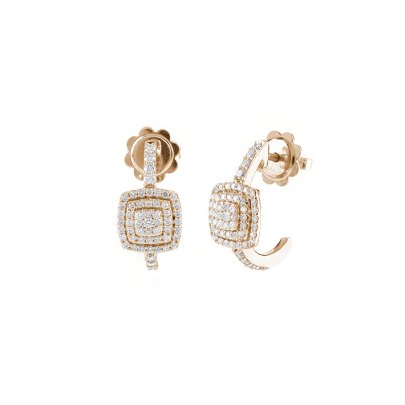 Orecchini in oro rosa 18kt con diamanti, della collezione Bagliori di Salvini.