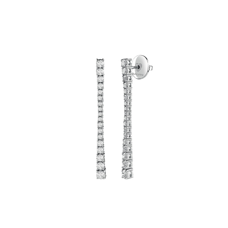 Orecchini in oro bianco con diamanti, della collezione Battito di Salvini.