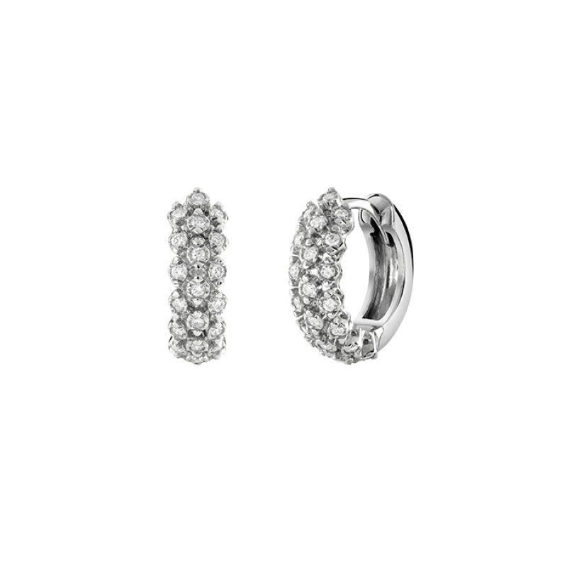 Orecchini in oro bianco con diamanti, della collezione Cachemire di Salvini.