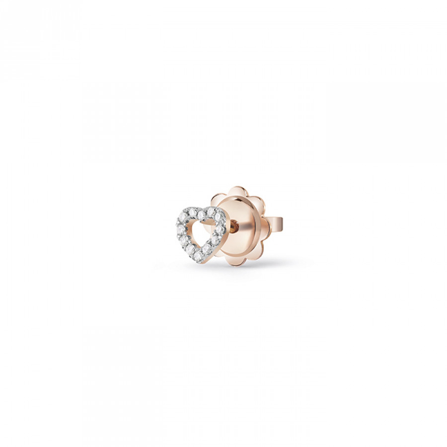 Monorecchino Salvini in oro rosa 9k e diamante 0.05 ct Gh con cuore taglio pietra rotondo