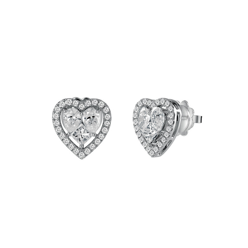 Orecchini Cuore in oro bianco con diamanti, della collezione Magia di Salvini.