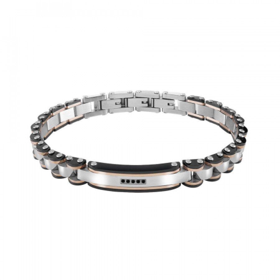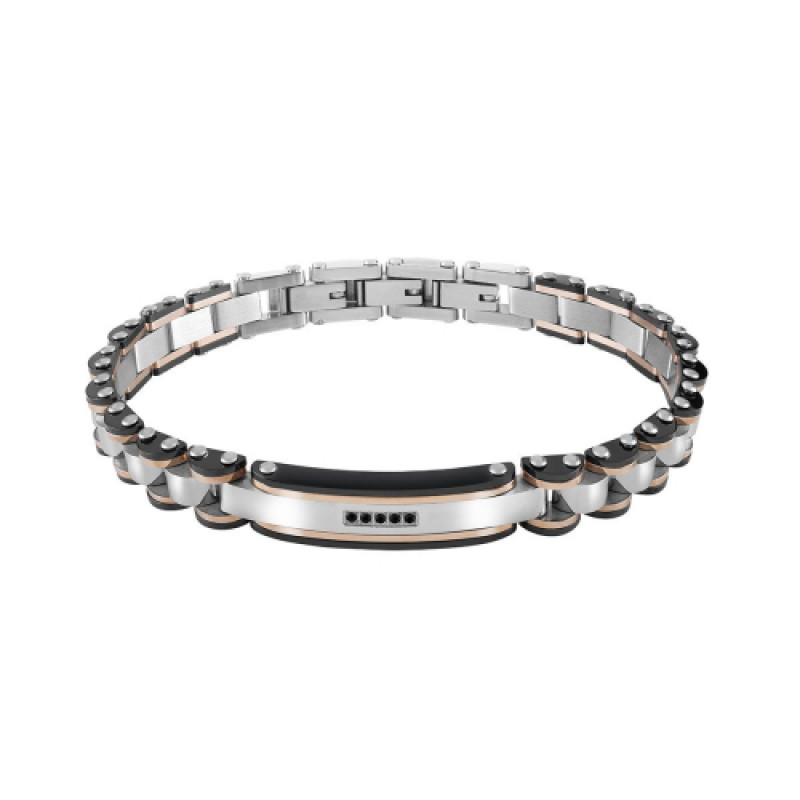 Bracciale Bliss Premiere in acciaio con dettagli in pvd nero e rosa e cubic zirconia