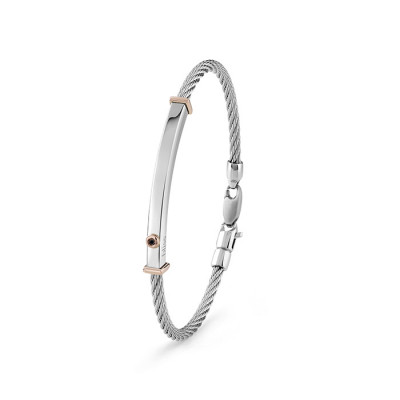 Bracciale da uomo in acciaio, oro rosa 18k e diamante nero 0.015 ct.