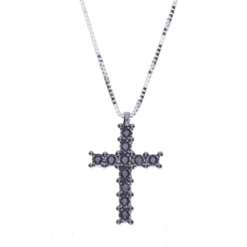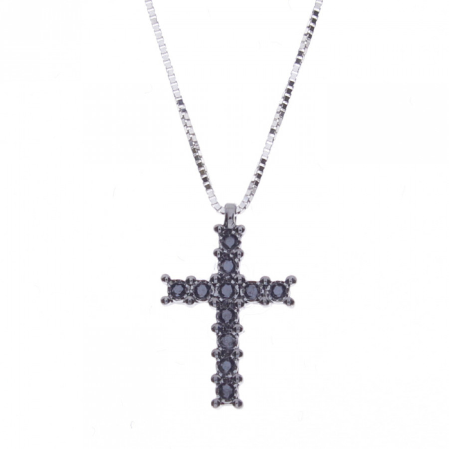 Collana Bliss croce in Oro bianco e Diamanti black linea Precious.
