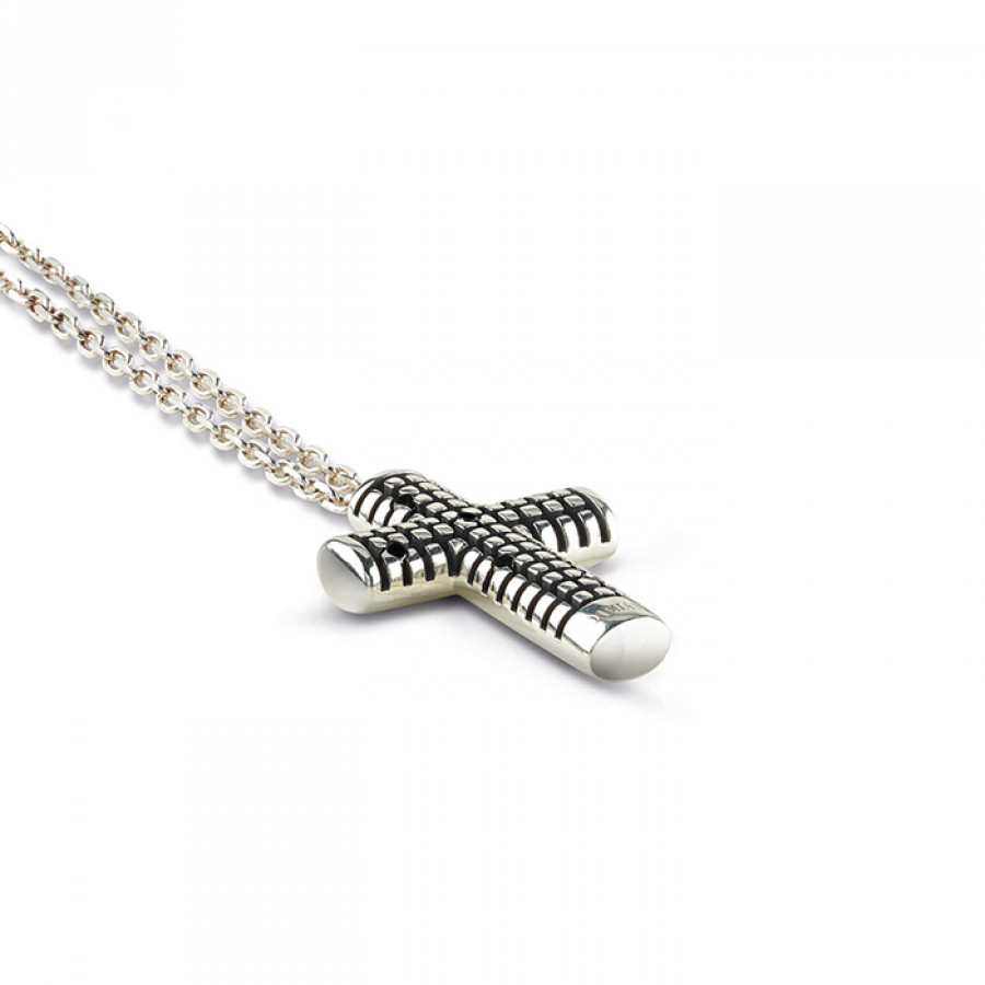 Collana con croce in argento e diamanti neri di Damiani della collezione Metropolitan