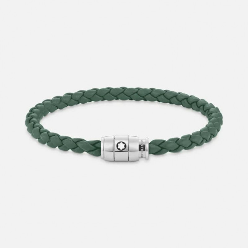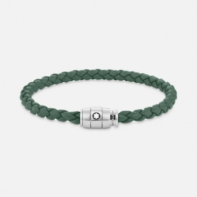 Bracciale Montblanc in pelle Peltro e 3 anelli in acciaio pregiato finitura lucida.