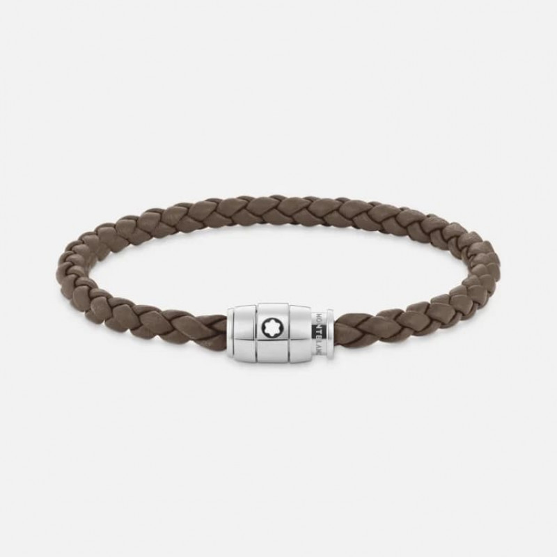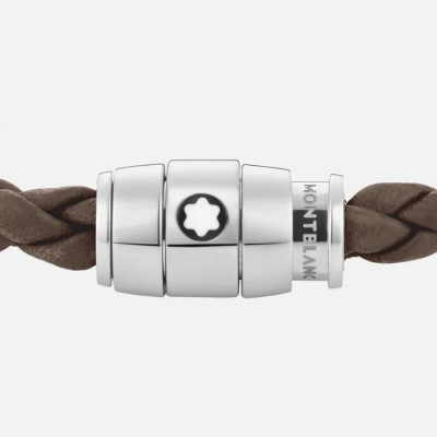 Bracciale Montblanc in pelle mastice e 3 anelli in acciaio pregiato finitura lucida.