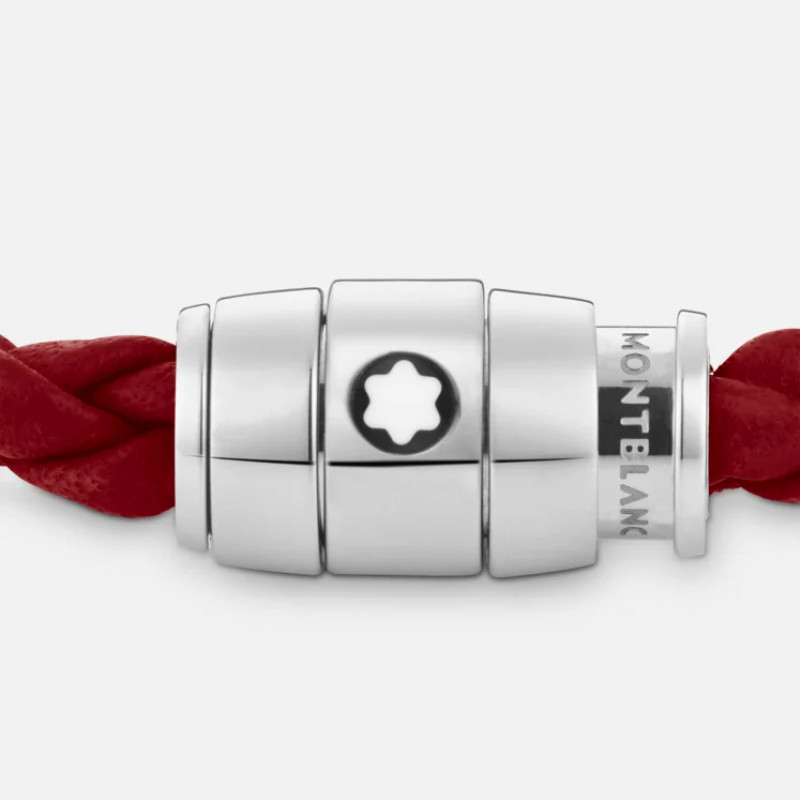 Bracciale Montblanc in pelle color Ruggine scuro e 3 anelli in acciaio pregiato finitura lucida.