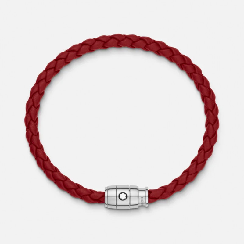 La creazione gioielliera, realizzata in pelle color Ruggine scuro, presenta una fibbia in acciaio pregiato finitura lucida con emblema Montblanc (misura 60).