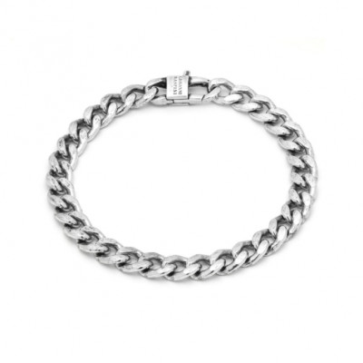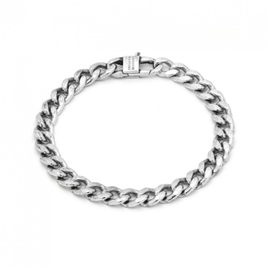 Una catena classica che diventa gioiello contemporaneo. Il bracciale Grumetta in argento viene realizzato completamente a mano. Da notare la chiusura a moschettone dal design in continuità stilistica con la catena. Materia che si fa stile, forza ed eleganza maschile senza tempo.