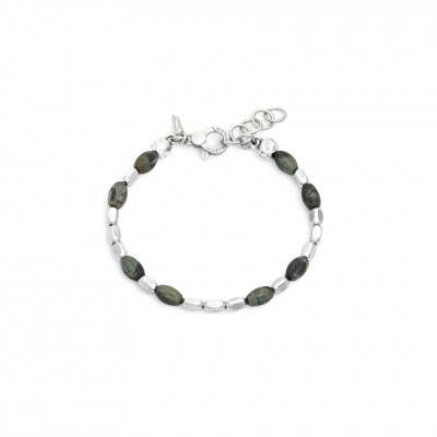 Il bracciale Seed Diaspro Africano si caratterizza per l'alternanza di elementi in argento alternati a pietre dure dal tono verde scuro, con inclusioni nere, che richiamano la forma di un seme. Il risultato ottenuto è quello di una preziosità delicata e raffinata, per un ricercato effetto tattile e visivo. Fatto a mano in azienda.