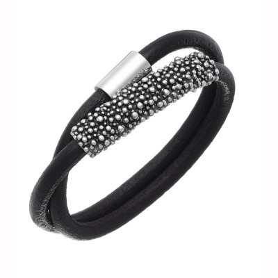 Argento e cuoio nero, luce e ombra per questo bracciale della collezione Uomo. La perfezione degli opposti per chi sappia indossare la bellezza semplice e assoluta della materia.