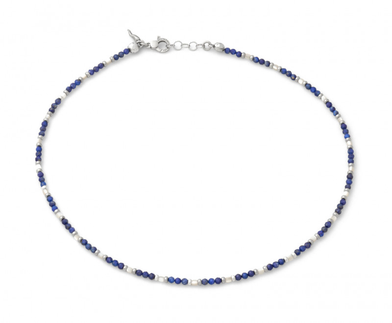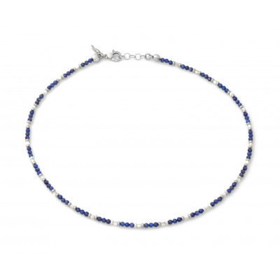 Una collana in cui la madreperla e i lapislazzuli sfaccettati si confrontano con mini elementi in argento. La prevalenza del lapis regala un colore blu intenso ed elegante. Dedicata a chi ama le piccole cose preziose di ogni giorno. Fatta a mano in azienda.