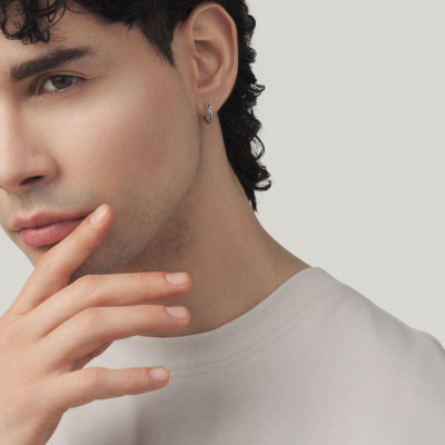 Questi orecchini in argento da uomo si distinguono per il loro fascino essenziale e contemporaneo. Ispirati al ritmo geometrico del mattone, questi gioielli sono realizzati in elegante argento brunito. La finitura diamantata regala al gioiello forza e luminosità. Fatti a mano in azienda.