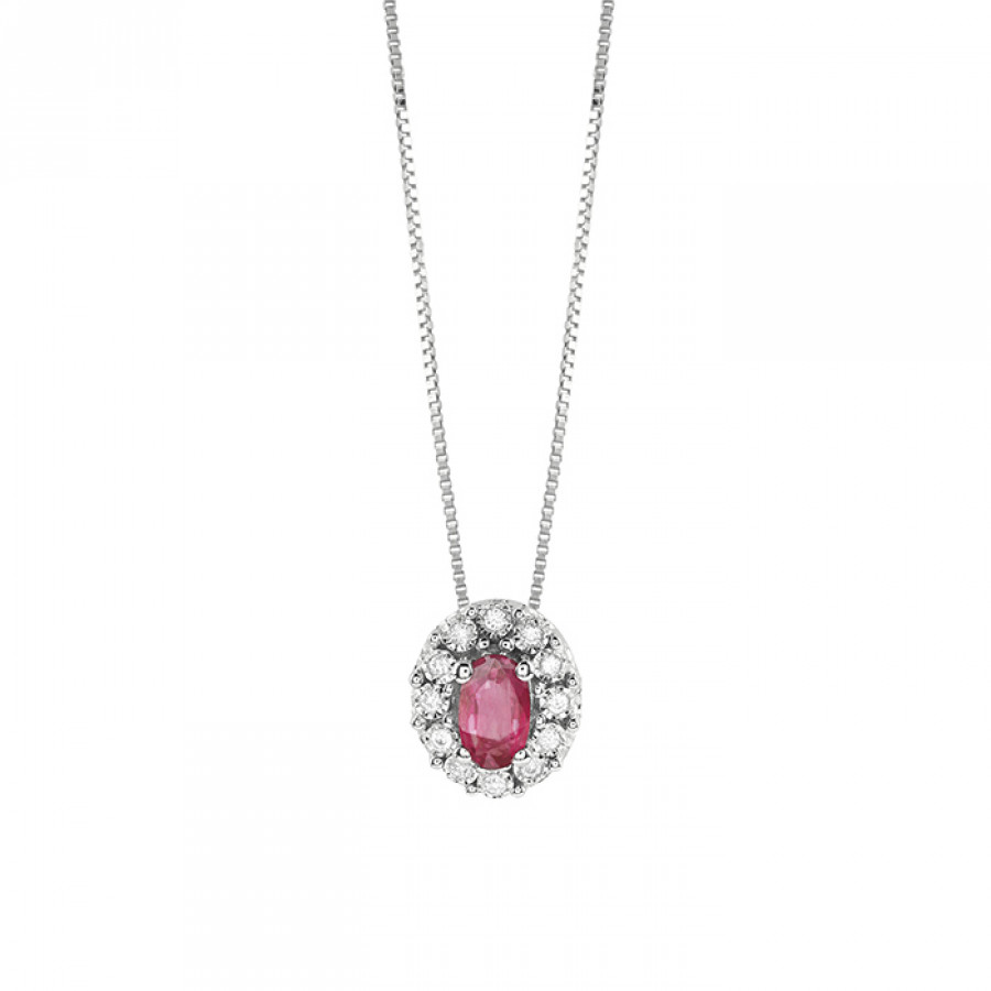 Collierino Bliss Regal in Oro Bianco, diamanti e rubino 0,35 carati