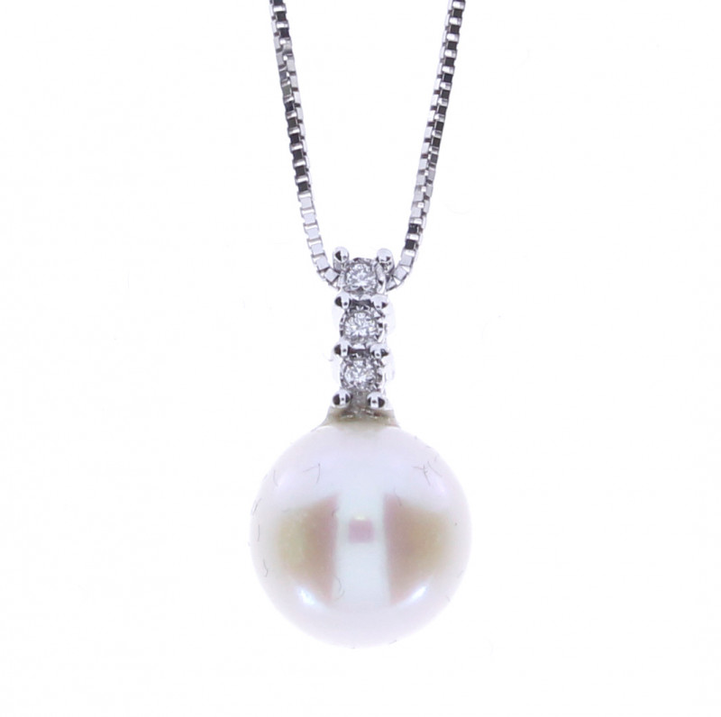 Collana in oro bianco e perla 7-7,5 mm, diamante 0.02 Ct. G Si