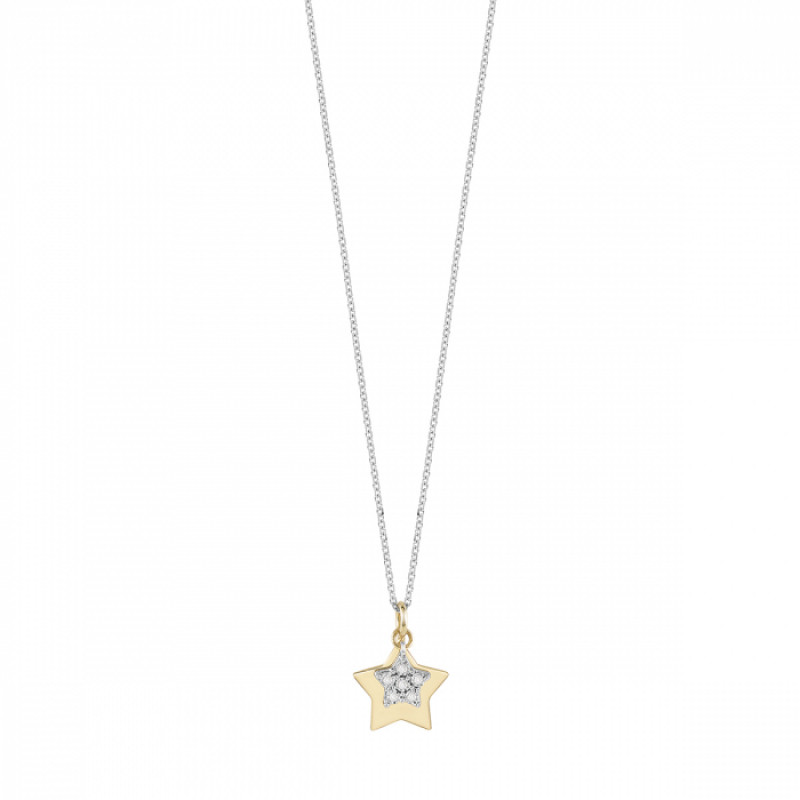 Collana in oro giallo 18k con charm stella in oro bianco e diamanti 0.02 ct. Gh