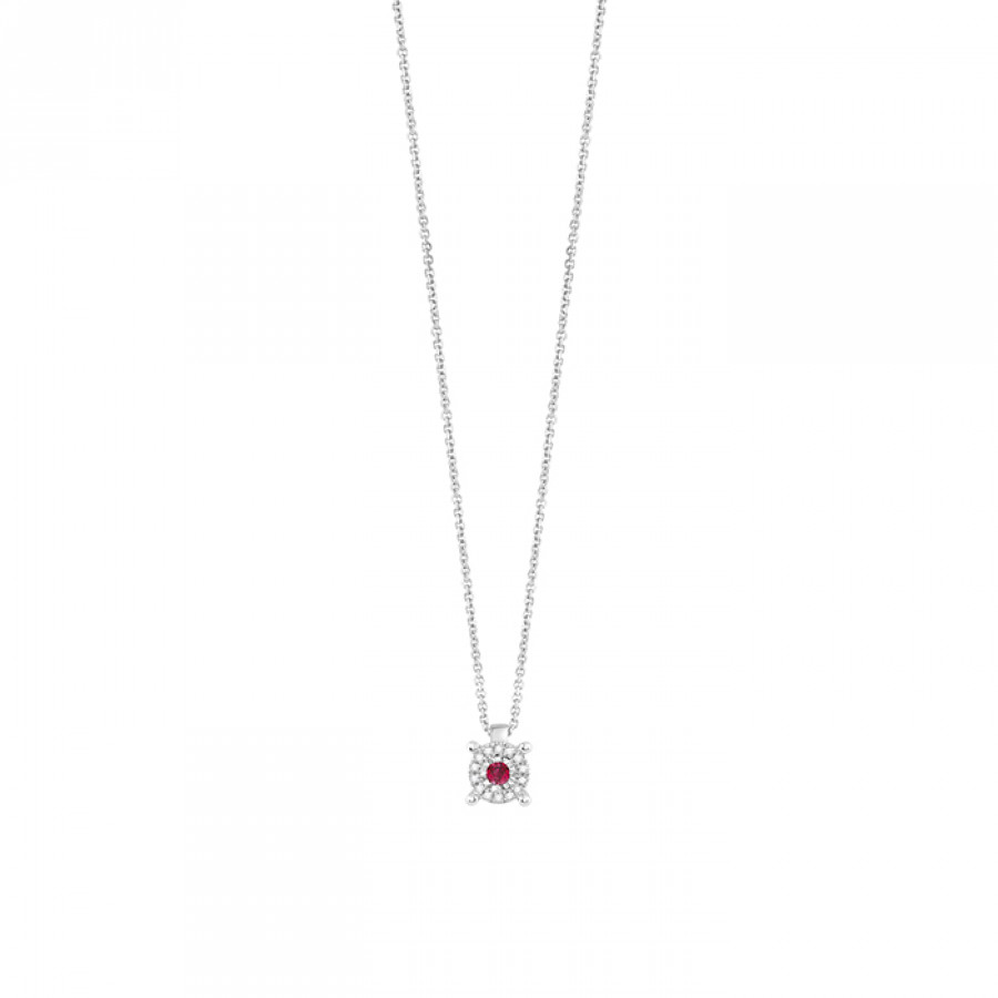 Collierino Bliss Rugiada Colors in oro bianco 18 kt e diamanti con rubino e taglio rotondo