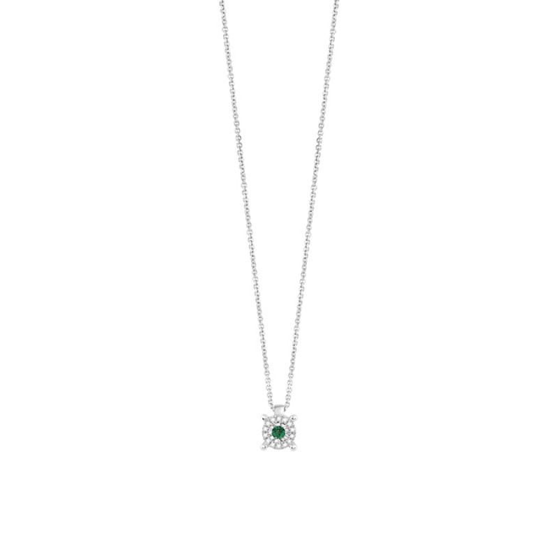 Collierino Bliss Rugiada Colors in oro bianco 18 kt e diamanti con smeraldo e taglio rotondo