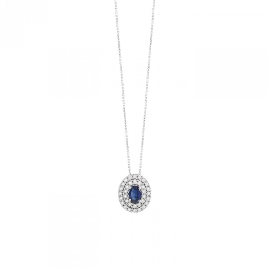 Collierino Bliss Regal in oro bianco 18 kt diamanti 0,14 ct e zaffiro 0,6 ct taglio ovale