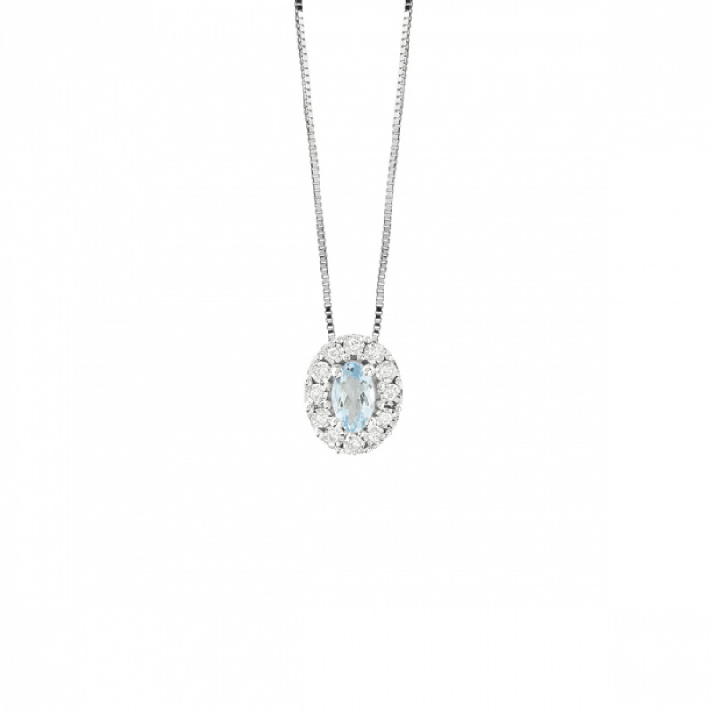 Collierino Bliss Stephanie in oro bianco 18 kt diamanti 0,04 ct e acquamarina 0,05 ct taglio ovale