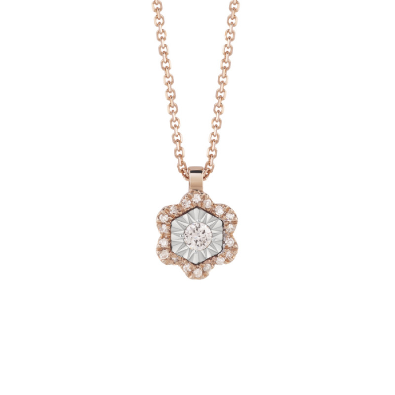 Collana in oro rosa 18k e diamanti 0.08 ct. Gh