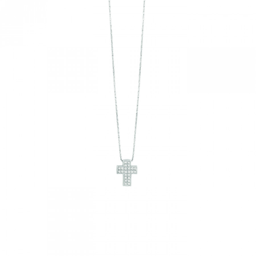 Collana in oro bianco 9 kt con diamanti 0,007 ct. GH ciondolo Croce