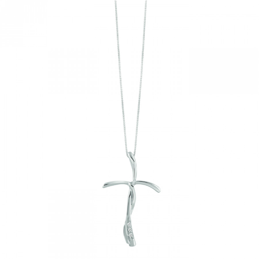 Collana in oro bianco 9 kt con diamanti 0,001 ct. GH ciondolo Croce