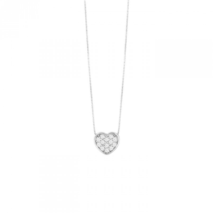 Collana in oro bianco e ciondolo a forma di Cuore con diamanti ct. 0,16 G Si