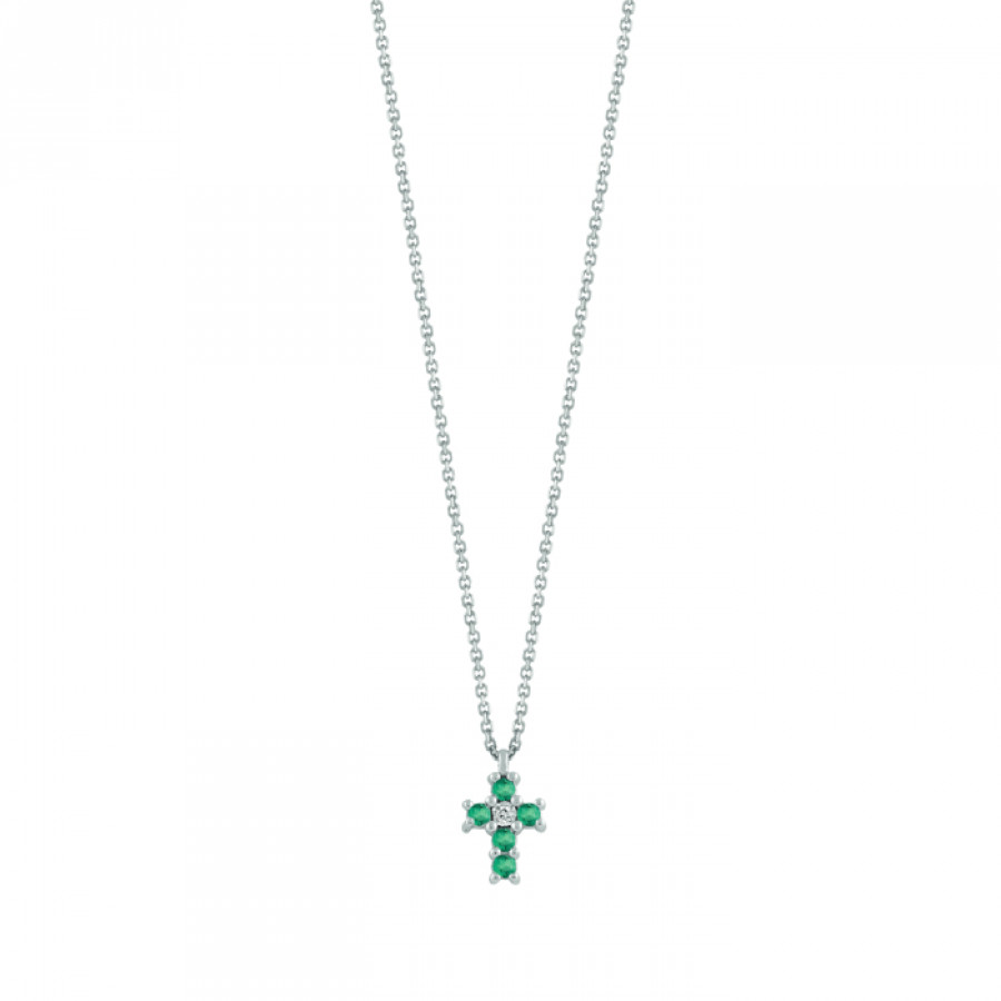 Collana in oro bianco 18k, diamanti ct. 0,01 GH e smeraldi ct. 0,13