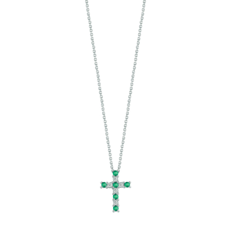 Collana in oro bianco 18k, diamanti ct. 0,03 GH e smeraldi ct. 0,12