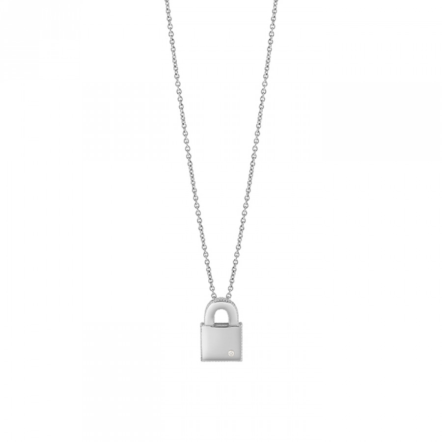Collana Bliss Joy in oro bianco 9 kt con diamante 0,003 ct ciondolo lucchetto