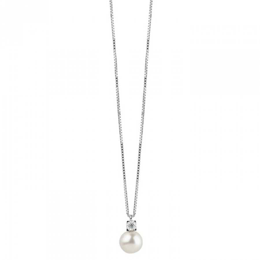 Collana Bliss Rugiada in Oro Bianco 18kt, perla 8/8,5 e Diamante 0,03 ct.