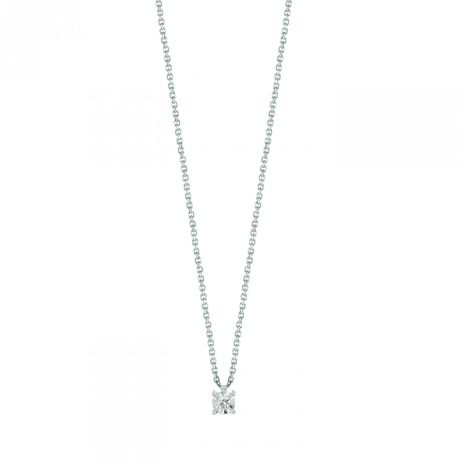 Collana in oro bianco 18k e diamanti 0.07 ct. Gh taglio pietra rotondo