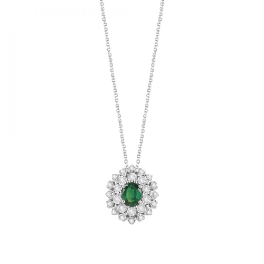 Collana in oro bianco 18 kt e smeraldo 0,35 ct taglio ovale con diamanti 0,15 ct GH