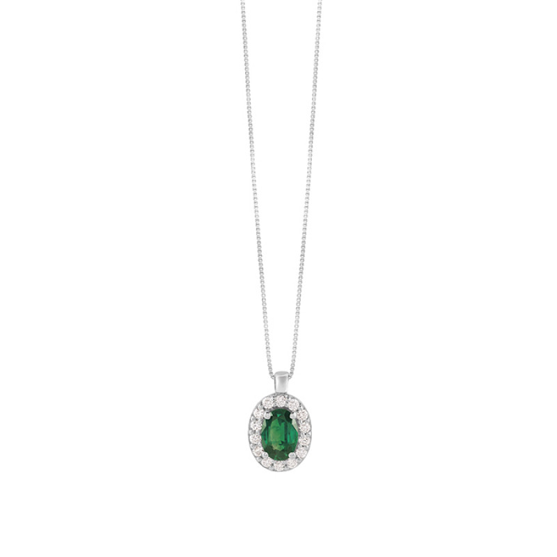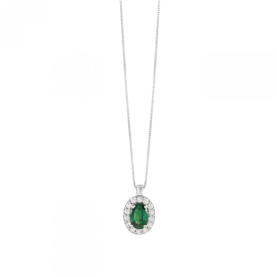 Collana in oro bianco 18kt, Smeraldi 0,35 ct e Diamanti 0,18 ct G taglio pietra rotondo.