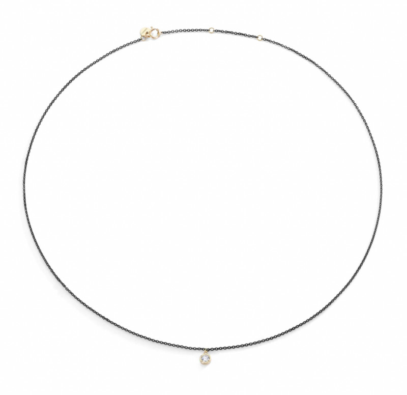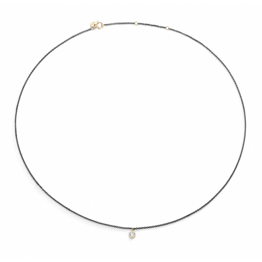 La collana solitario Black PVD BEE è realizzata in oro giallo 18 carati con catena fashion in argento PVD nero.