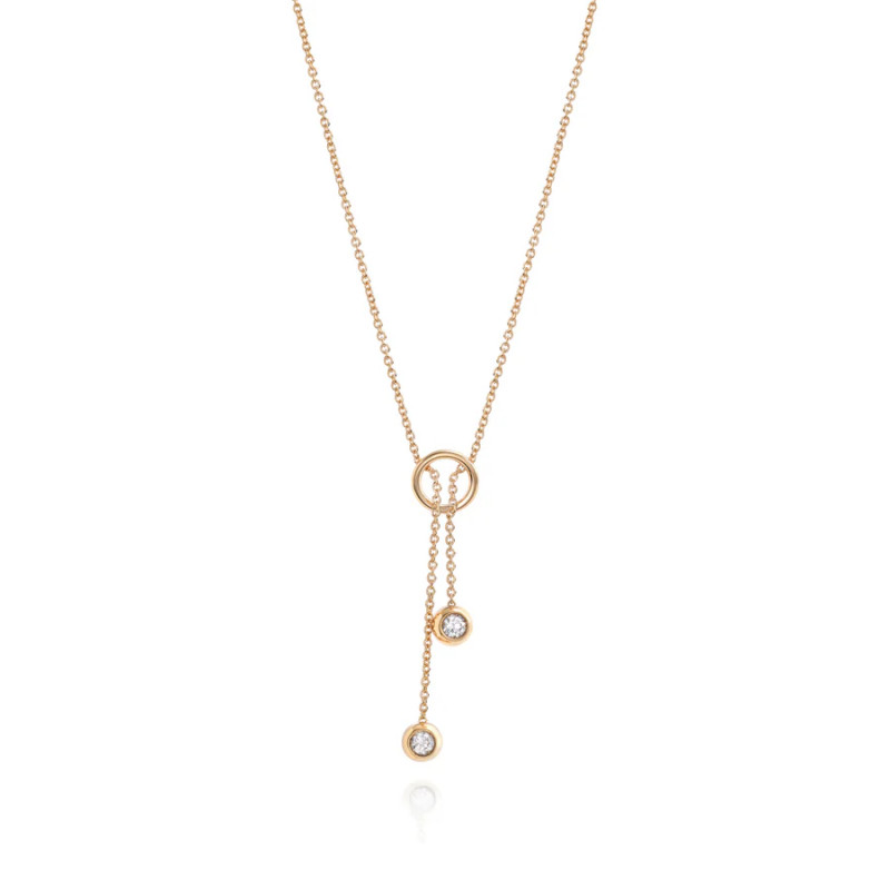 Giocosa e glamour, la collana in oro giallo con doppia bubble e diamanti cattura lo spirito leggero della collezione Bubble. Le sfere racchiudono bagliori infiniti, come riflessi di sole, per un look luminoso e contemporaneo.