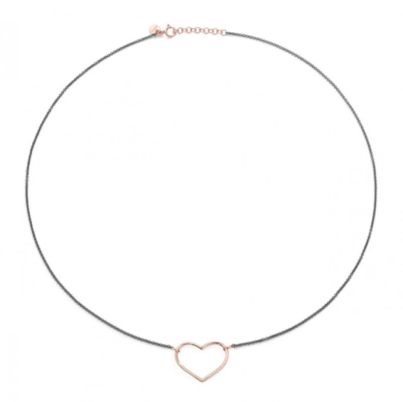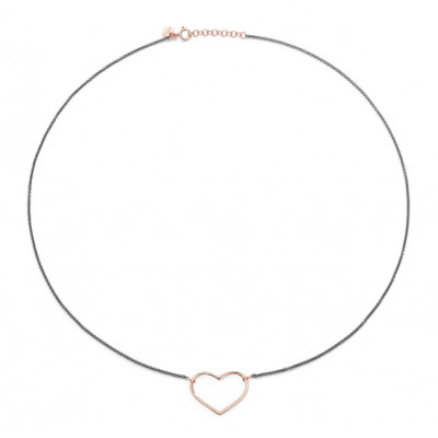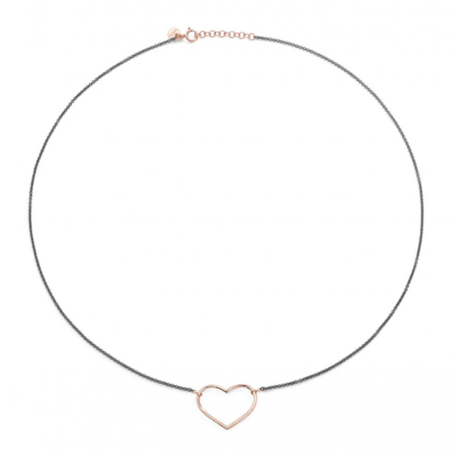 Collana in argento PVD nero e cuore in oro rosa 18 kt