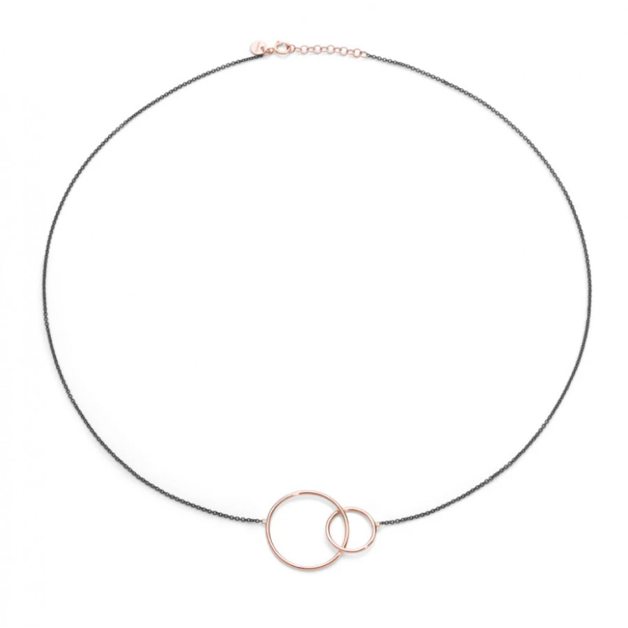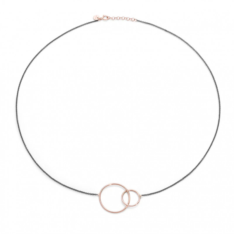 Collana in argento PVD nero e doppio circle in oro rosa 18 kt