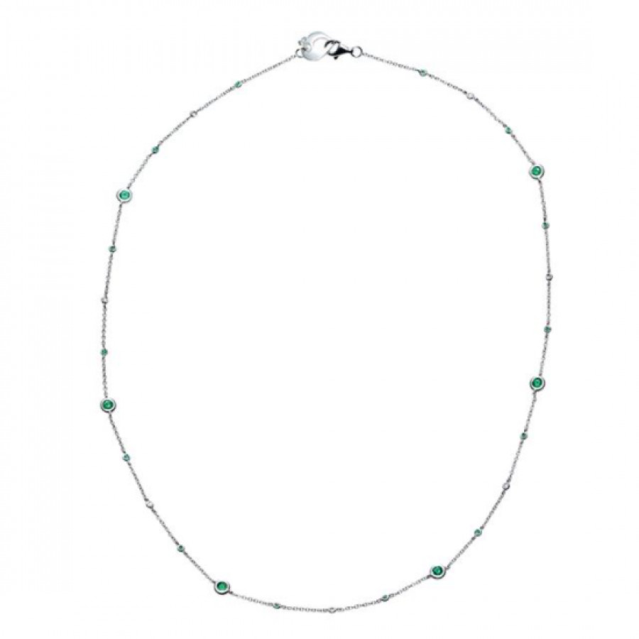 Collana Capri 84 cm in oro bianco 18Kt, diamanti e smeraldi.