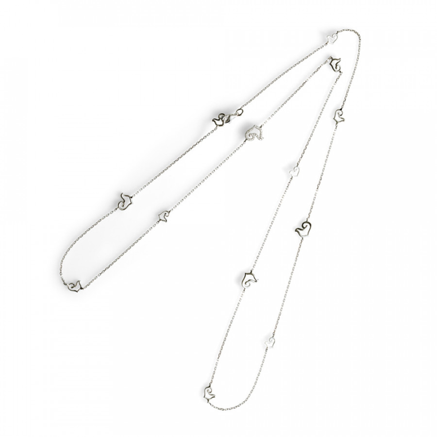 Collana in oro bianco cm 93 e 13 galli, un gallo incassato double face