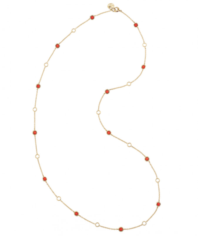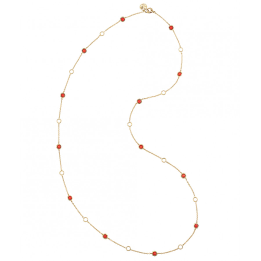 Catena 80 cm maglie ovali in oro giallo 18Kt e coralli rossi
