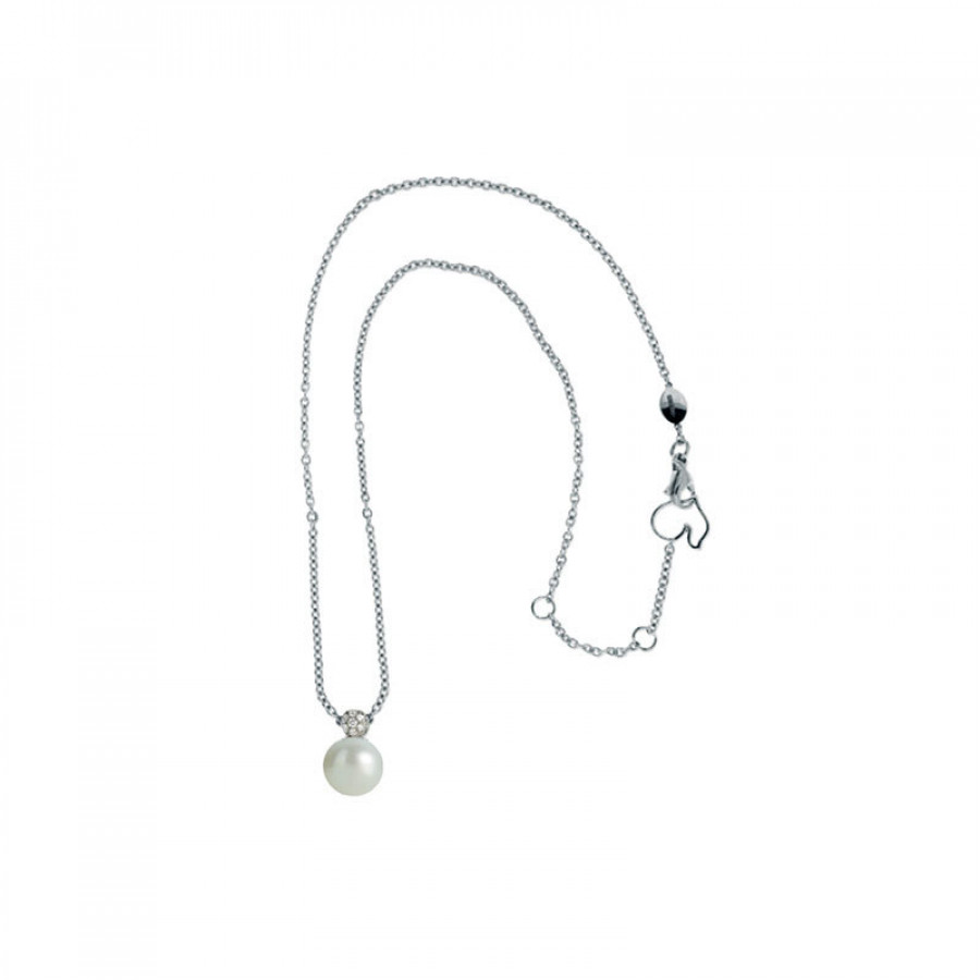 Collana Chantecler in oro bianco, diamanti e perla fwp, appartenente alla collezione Bon Bon.