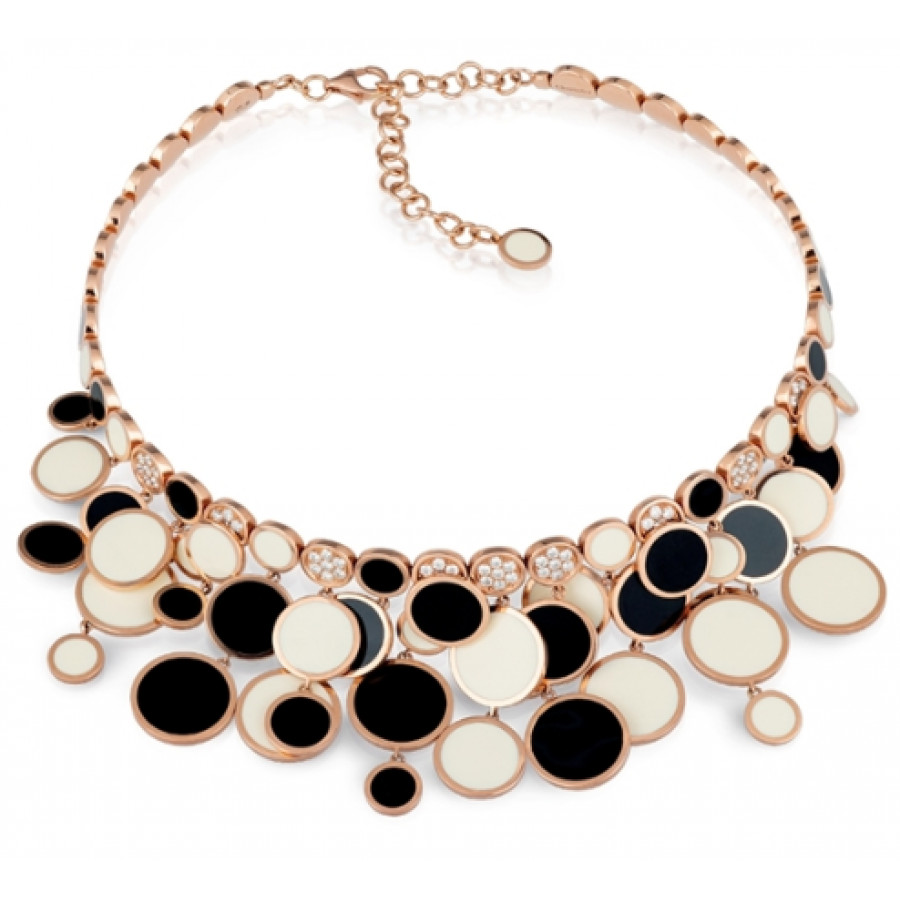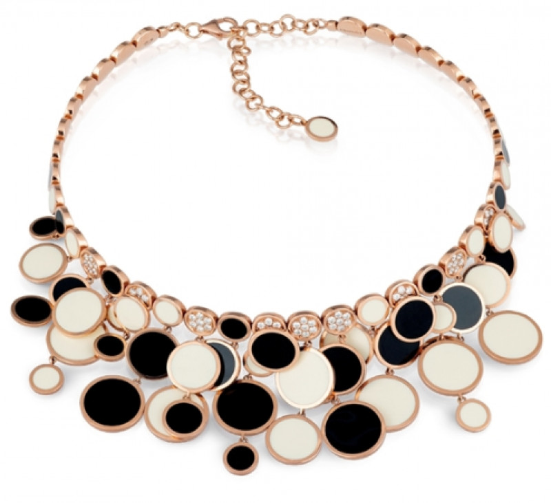 Collana in oro rosa, diamanti bianchi e smalto nero e bianco della collezione Paillettes di Chantecler