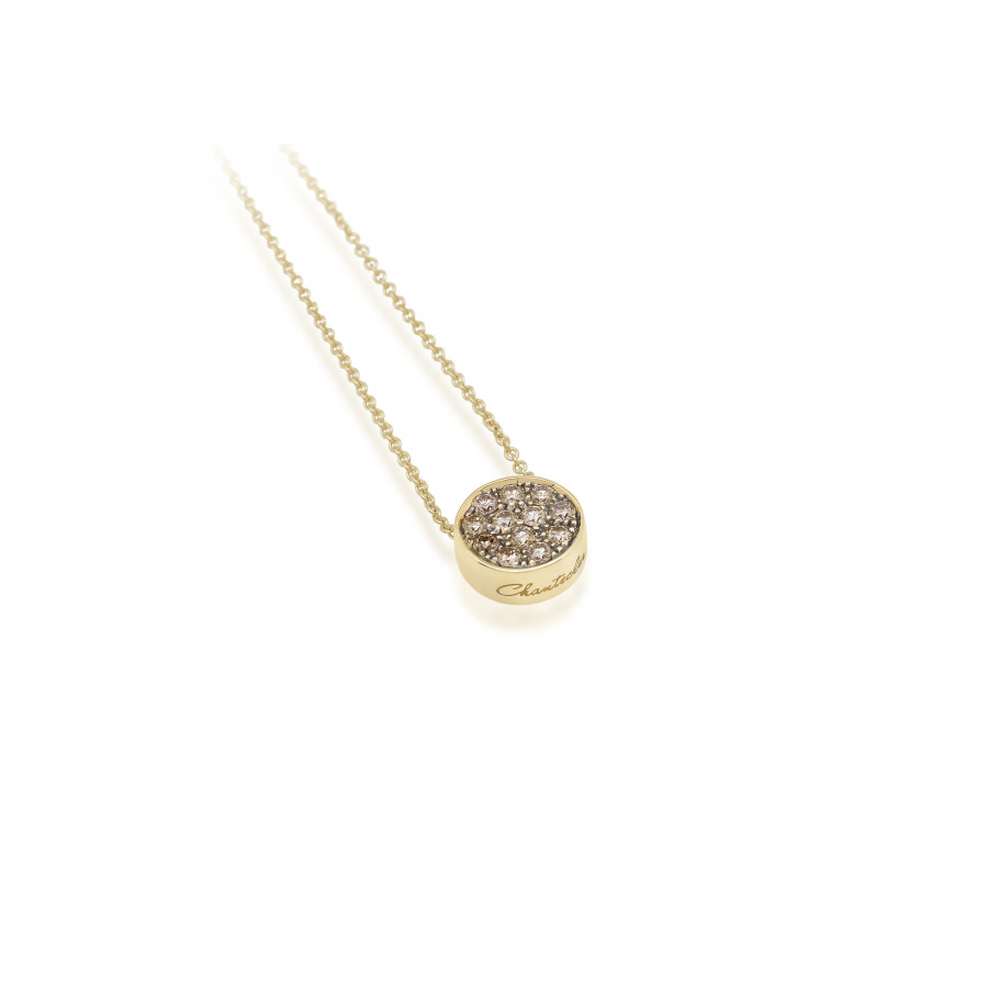 Collana lunghezza 40/42cm con pendente Paillettes in oro giallo 18kt, pavè di diamanti champagne e smalto caramello di Chantecler della collezione Paillettes