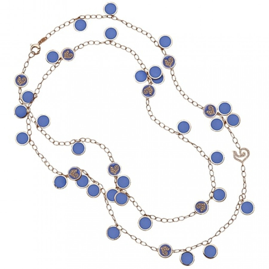 Collana girocollo Paillettes 90 cm in oro rosa 18Kt, diamanti e smalto blu Capri.